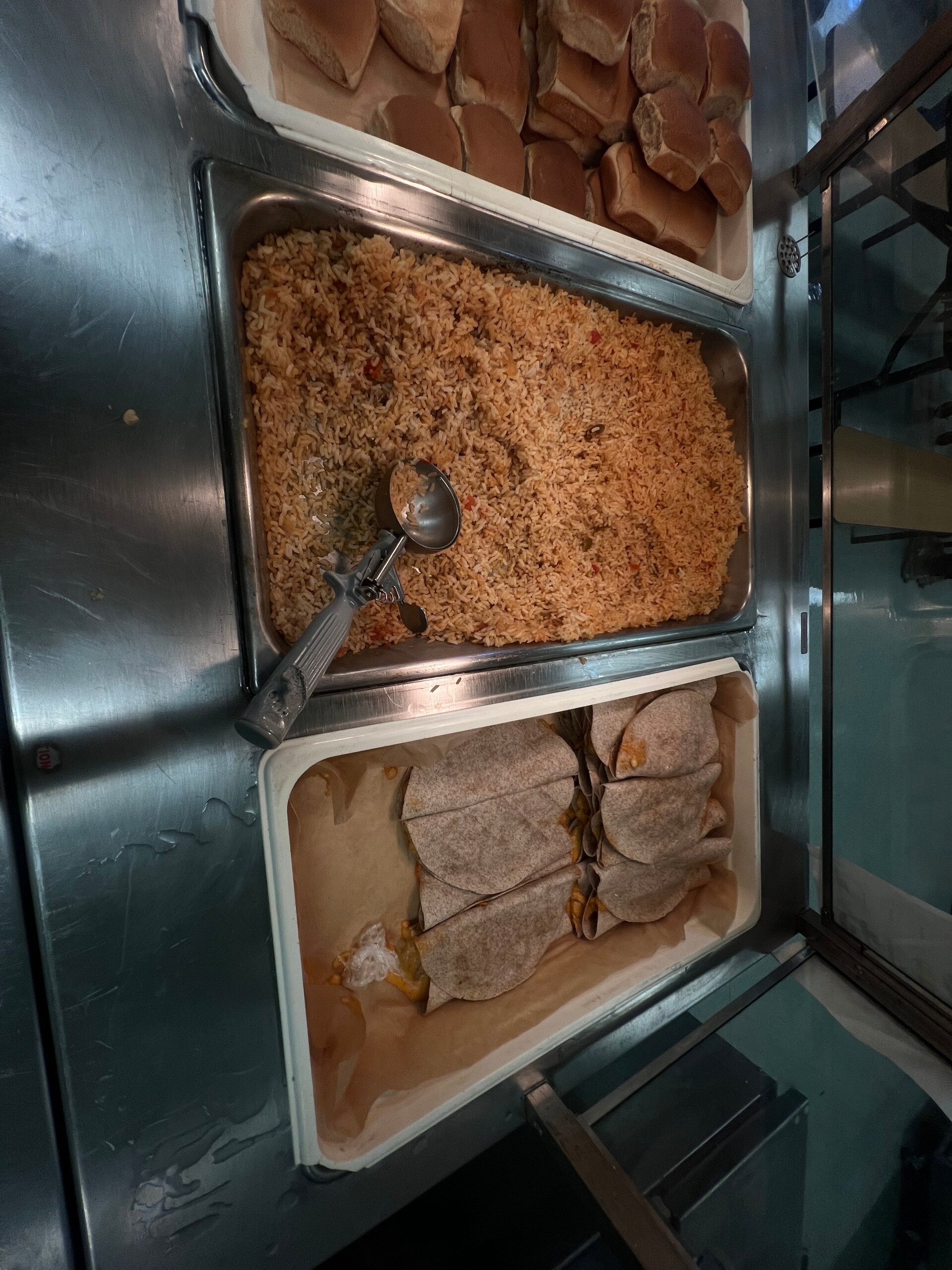 Tuesday’s cafeteria food: chicken, cheese & salsa wraps or loaded chili cheese baked potato, fruit, veggies.